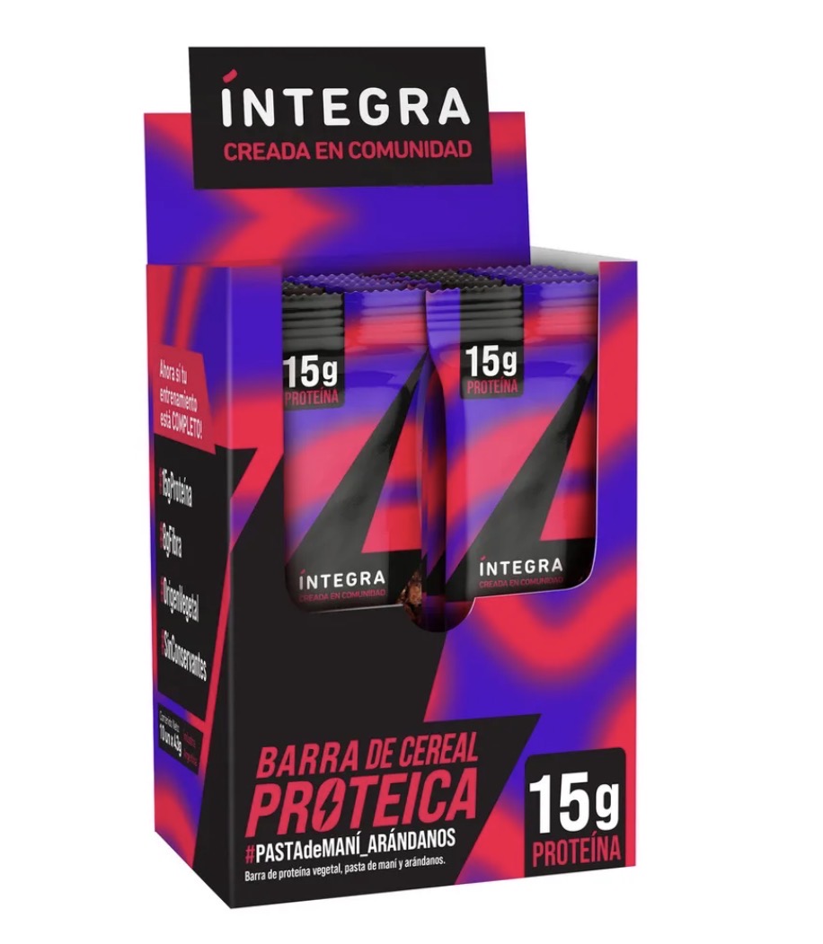 Barra de Cereal Proteica Pasta de maní y Arandanos